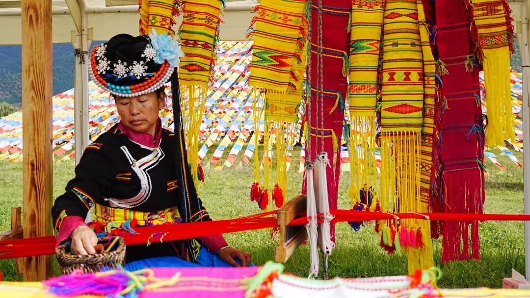 另一边,摩梭织布、绘画、拓印、竹编等非遗体验区更是人头攒动,游客们排着长队,亲手触摸这份古老的文化温度,将一份份“盐源记忆”带回家。