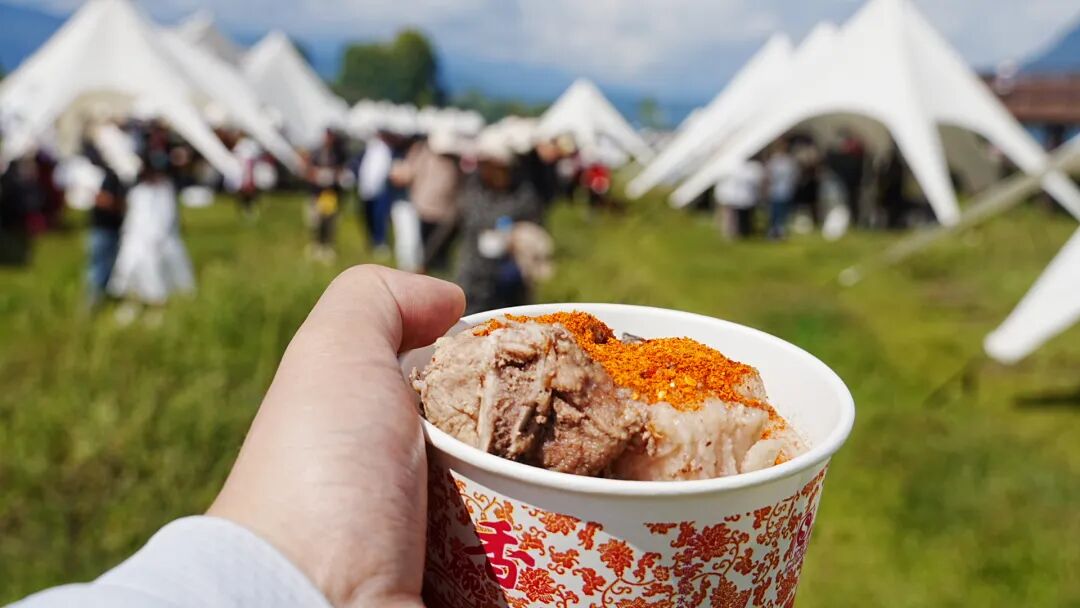 空气里飘着坨坨肉的浓郁香气,各种地道小吃让人挪不动步。