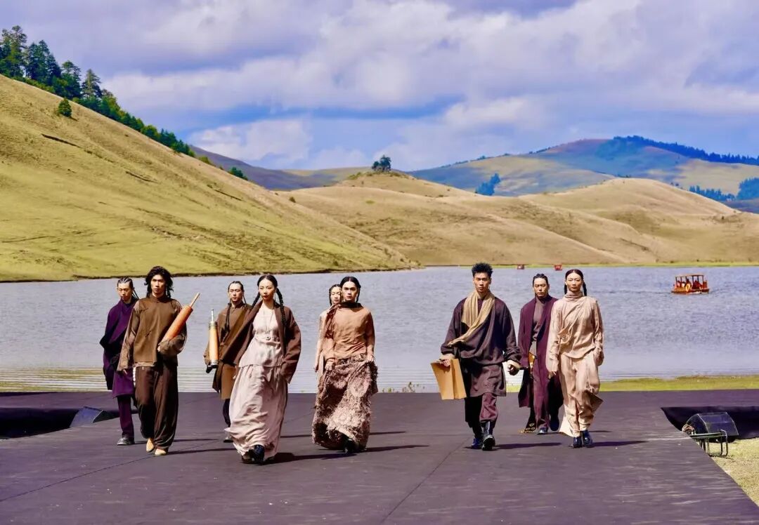 紧接着,新藏式服饰接棒亮相,设计师以敬畏之心挖掘传统,以创新之力重构表达,既保留民族文化的灵魂,又注入当代穿搭的轻盈,更具年轻态与实用性。在这场湖光山色与多元民族服饰相映的视觉盛宴里,不禁让人悄然凝聚起跨越民族的情感共鸣。